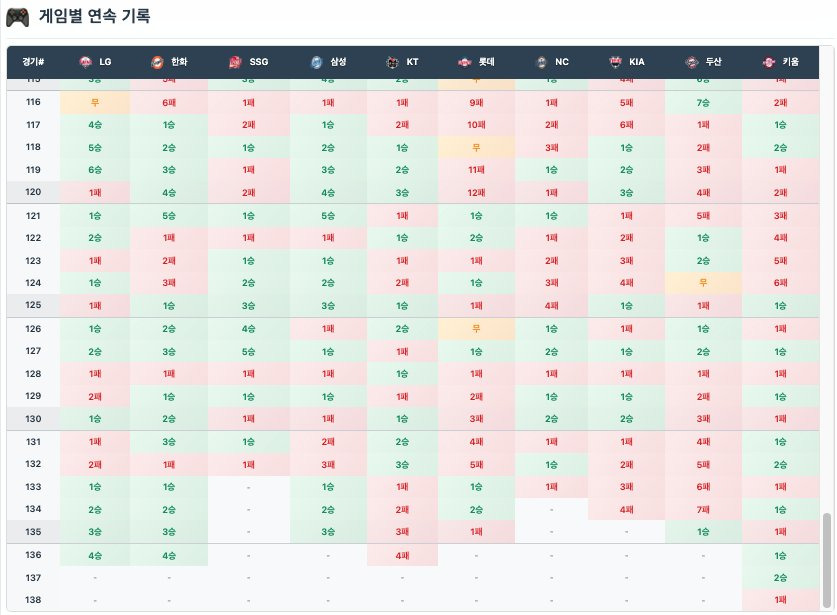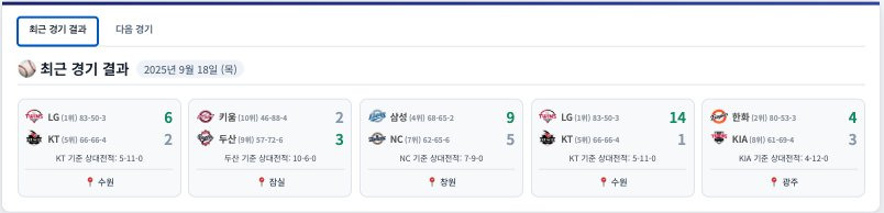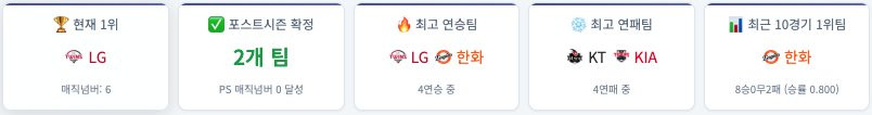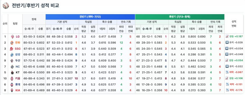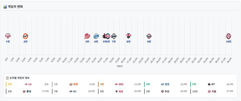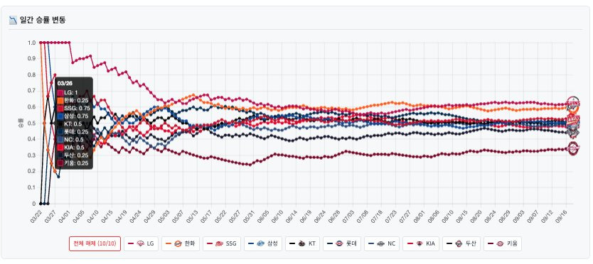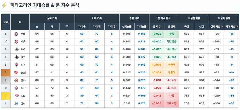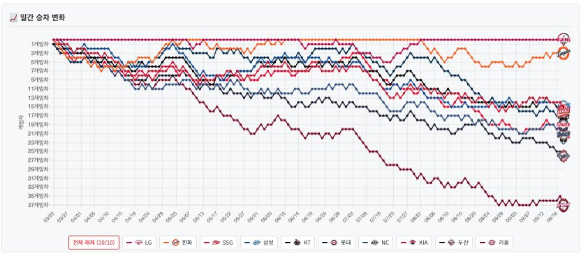 KBO 2025 실시간 순위표 | 매직넘버 일별통계 순위변동 피타고리안 클러치 홈원정 상대전적