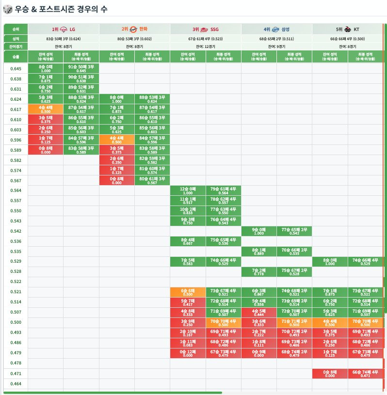 #KBO순위표업데이트 #KBO우승경우의수 #엘지한화1위싸움 #2025엘지트윈스우승 #프로야구우승매직넘버